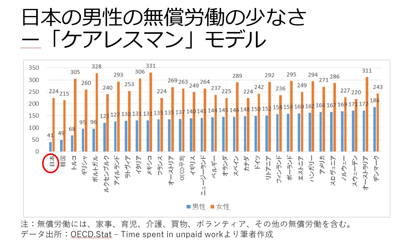 日本の男性の家事のしなさっぷり! こんだけ国を並べて日本は最低です。日本の男性はぜんぜん家事をしません。フルタイムで働いてる女性でも、家事の大半を引き受けてしまっている。